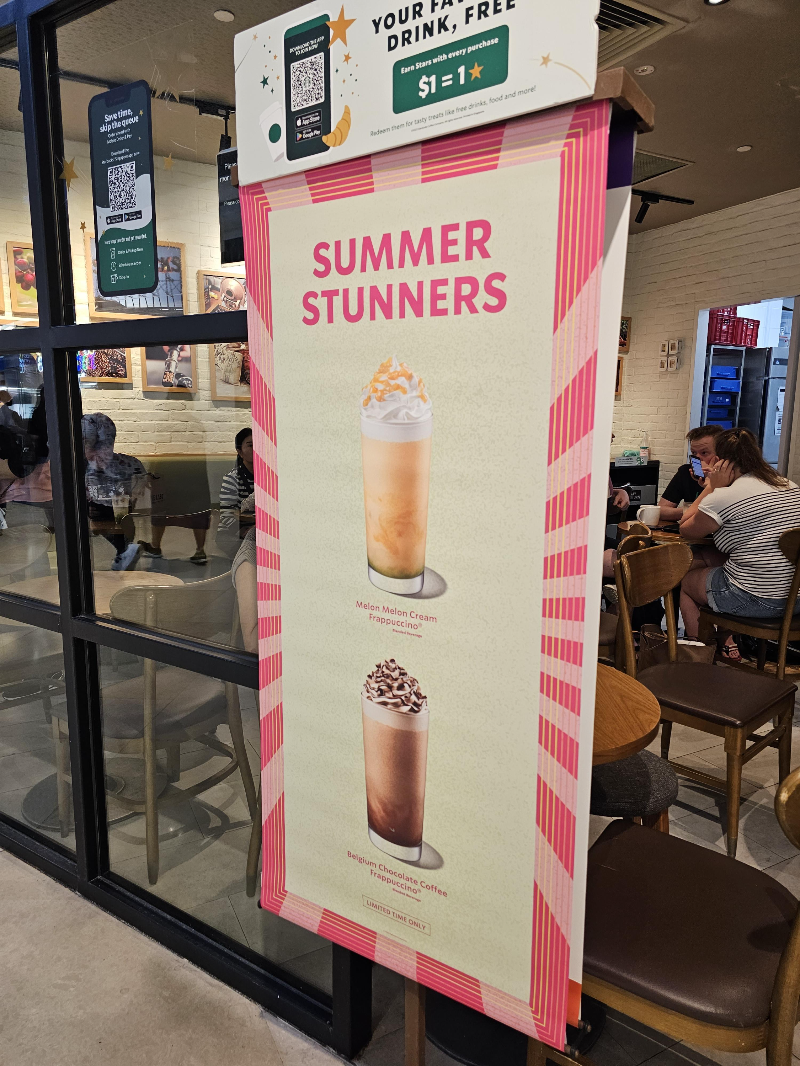 쇼핑 중 들른 스타벅스에서는 '멜론 크림 프라푸치노'를 주문했습니다.